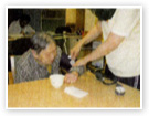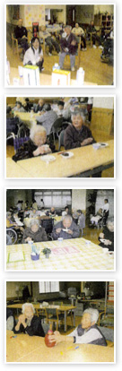 検温、脈拍、血圧、その他健康状態のチェックを行います。お茶などを飲まれて利用者同士、歓談をしていただきます。 |